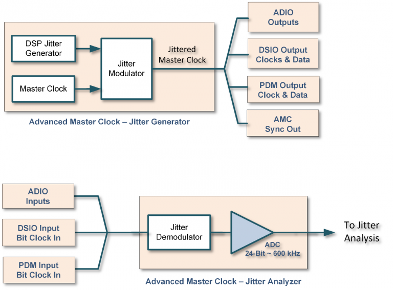 高级主时钟 (AMC)— B 系列 APx5555 的标准以及 APx52x 和 APx58x B 系列音频分析仪的可选配置 ,可提供抖动、触发器和时钟同步功能。AMC 还提供抖动生成和分析功能。作为选项,AMC 可订购新仪器或改装到 2012 年后生产的现有 APx 分析仪(不包括 APx515 或 APx511)。