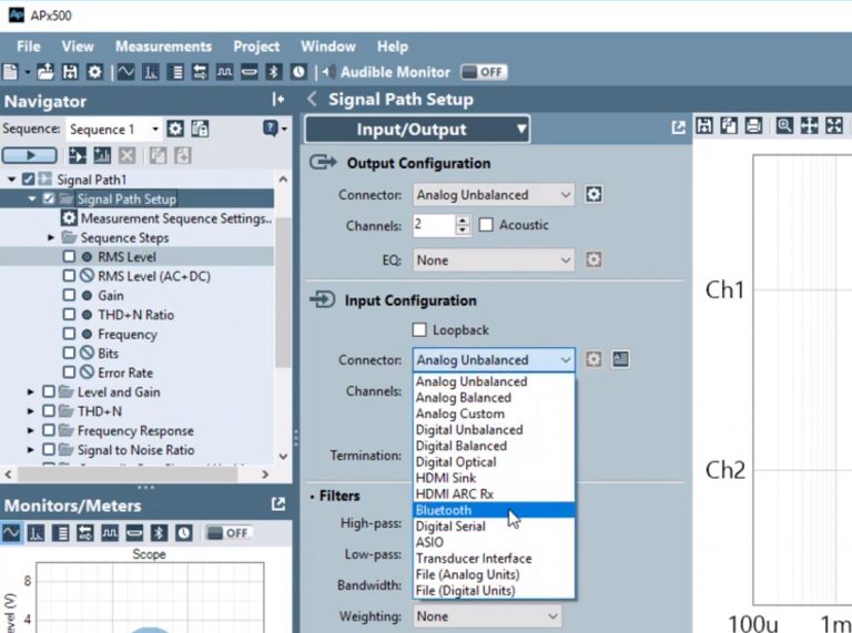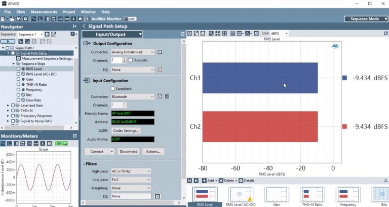 8. 现在我们可以对提供给APx蓝牙输入的蓝牙音频数据进行开环测量。