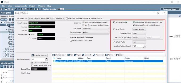对于熟悉Bluetooth Duo模块的用户,下面是配置APx500软件(Bluetooth Duo需要v4.5软件或更高版本)并将其与正在测试的设备(DUT)配对的分步指南。