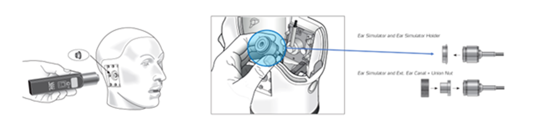 就在今年6月(2022年),GRAS的仿真耳产品也开始全面支持TEDS功能,这将使得耳机测试等需要用到仿真耳或相关治具的测试可以享有同等的便利。以45BC仿真人头的校准来举例,原本的校准需要移除外耳廓,并搭配特殊的Adapter(如下图左),而针对人体工学耳廓的特殊Config还需要将内部的仿真耳完全拆下(如下图右)。但在引入TEDS功能后,只需轻松点击TEDS校准功能,即可自动获得仿真耳的灵敏度参数,十分便捷。
